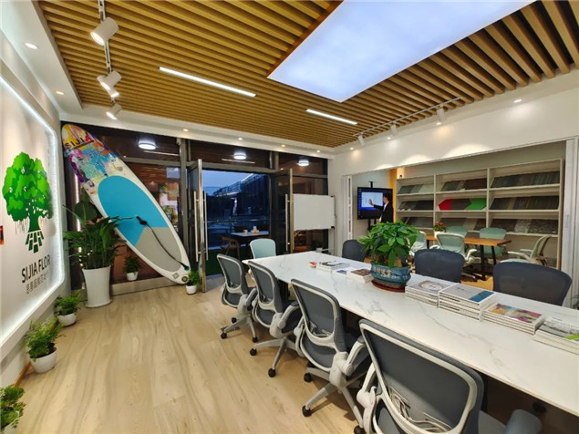 运营中心的内部装饰,,,,,,,,充分融入品牌元素。。。。。。。接纳97国际-至尊品牌,源于信誉超能芯铺装地面,,,,,,,,以超能芯六边形地板装饰茶歇区,,,,,,,,以鱼骨拼铺法装饰洽谈区,,,,,,,,展现产品应用效果,,,,,,,,为自己代言。。。。。。。